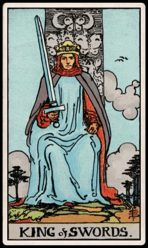 The King of Swords invites you to slow down the constant churn of your inquisitive mind and embrace a more methodical approach. Actively listen to the perspectives of others, asking those piercing questions that reveal deeper truths beneath the surface. However, don’t be swayed too easily by external opinions – trust your own discerning intelligence to form well-grounded conclusions.
