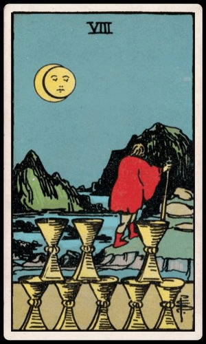 The Eight of Cups appears today as a signpost on your path. This card whispers of change, of letting go, and of a yearning for something new to fill the spaces left behind.