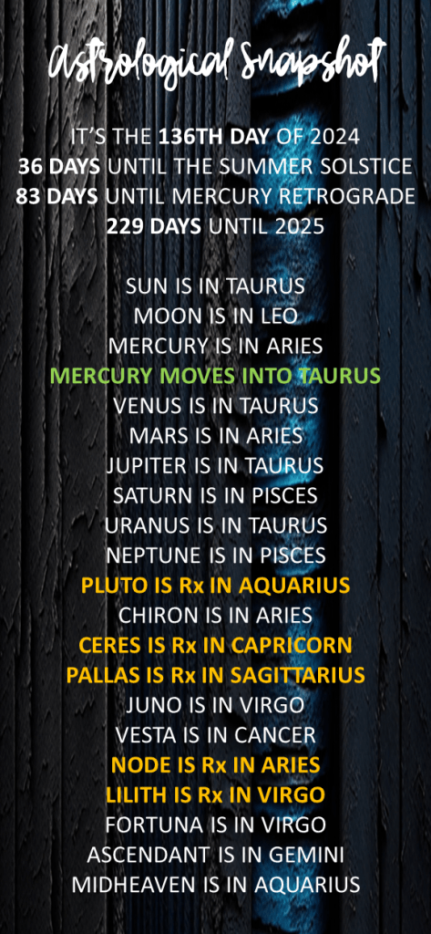 Mercury, your ruling planet: Mercury, the quick-witted messenger, continues its journey through Taurus, infusing your communication with a grounded, sensual touch. Your words may carry a certain weight and practicality, making this an excellent time to express your needs and desires with clarity and conviction. However, be mindful of stubbornness; flexibility will be key to smooth interactions.