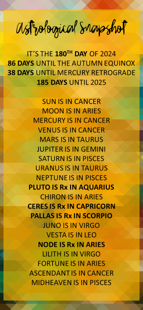 Moon in Aries square Sun in Cancer: This tense aspect could create a tug-of-war between your desire for independence and your need for emotional security. You may feel torn between pursuing your own goals and nurturing your relationships. Finding a balance between these competing needs will be key. Practice open communication, prioritize self-care, and don’t be afraid to ask for support when needed.