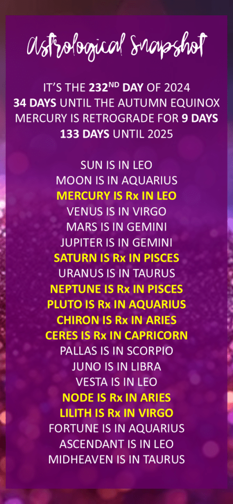 Mercury retrograde in Virgo and Leo adds another layer of complexity to the mix. Communication might require extra patience and clarity. Double-check important details, and be mindful of potential misunderstandings. This is a time to reflect on your communication patterns and refine your approach.