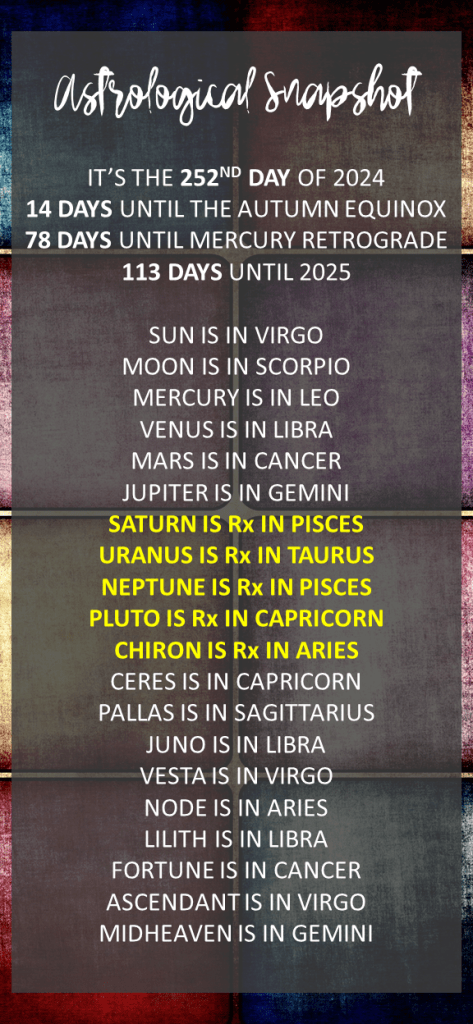 Overall, September 8th encourages you to embrace your multifaceted nature, Gemini Rising. Balance your intellectual curiosity with emotional awareness, your playful spirit with grounded action. By navigating the day’s contrasting energies with awareness and adaptability, you can create a harmonious blend of inner and outer fulfillment. Remember, your ability to bridge different worlds is your superpower. Use it wisely to create a life that reflects your true essence and inspires those around you.