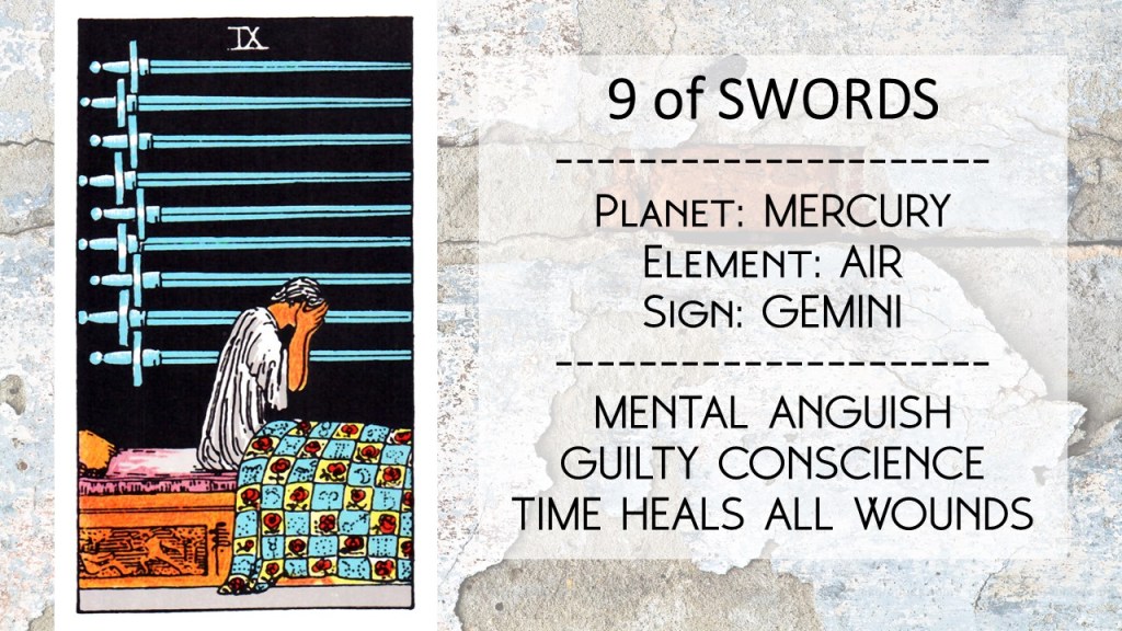 Gemini, today’s card, the Nine of Swords, touches upon a theme that resonates deeply with your airy nature: the power of mental release and renewal. While this card often carries connotations of worry and anxiety, for you, it signals a pivotal moment of introspection and liberation.