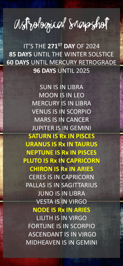 As the day unfolds, you’ll find yourself drawn to conversations and connections, eager to share your ideas and learn from others. However, the Moon’s square to Venus in Scorpio and its quincunx to Saturn in Pisces might introduce some emotional turbulence and a sense of restriction. Be mindful of any tendency to overthink or become entangled in unnecessary drama. Choose your words carefully, especially when discussing sensitive topics, and don’t hesitate to step back from overwhelming situations.