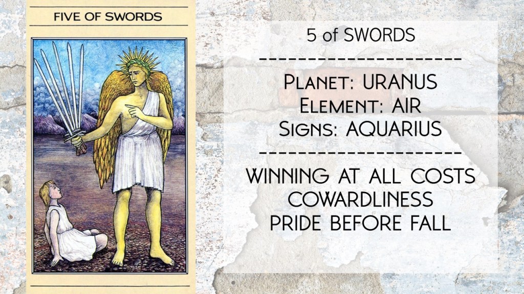 The Five of Swords encourages you to examine the source of these conflicts. Are they rooted in external disagreements, or do they stem from internal discord, where your own thoughts and ideas clash in a battle for dominance? This card invites you to shift your perspective, seeking a higher vantage point from which to view these challenges. Like a skilled debater, you possess the ability to see multiple sides of an argument, but this can also lead to overthinking and internal conflict.
