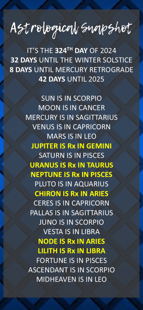 Gemini Rising, prepare for a day of dynamic energy and intellectual exploration. With your ruling planet, Mercury, soaring through the expansive realm of Sagittarius, your innate curiosity is ignited, and a thirst for knowledge takes center stage. This is a time for engaging in stimulating conversations, exploring new ideas, and broadening your horizons through learning and adventure. However, with Mercury opposing Jupiter in your first house, be mindful of a tendency towards overthinking or scattering your mental energy in too many directions. Focus on distilling information and prioritizing the pursuits that truly resonate with your soul’s purpose.
