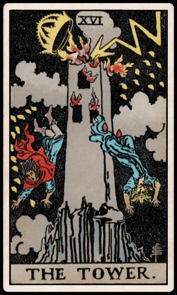 This card suggests that you may find yourself facing circumstances beyond your control. You might be forced to adapt to situations that you didn’t anticipate, to let go of plans that you had carefully laid out, or to confront realities that you’d rather avoid. The Tower’s message is one of acceptance. It’s about acknowledging the bracing presence of the future, recognizing that it is bursting in on the present, and understanding that resistance is futile. The best approach is to meet these changes with courage and resilience, to adapt as gracefully as possible, and to focus on what you can control – your response to the unfolding events.