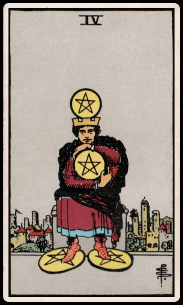 The Four of Pentacles invites you to find a balance between grounded practicality and expansive thinking. Appreciate the resources you have, manage them wisely, and remain open to new opportunities for growth and abundance. By embracing a mindset of gratitude and resourcefulness, you can unlock your full potential and create a life of both material and spiritual wealth.