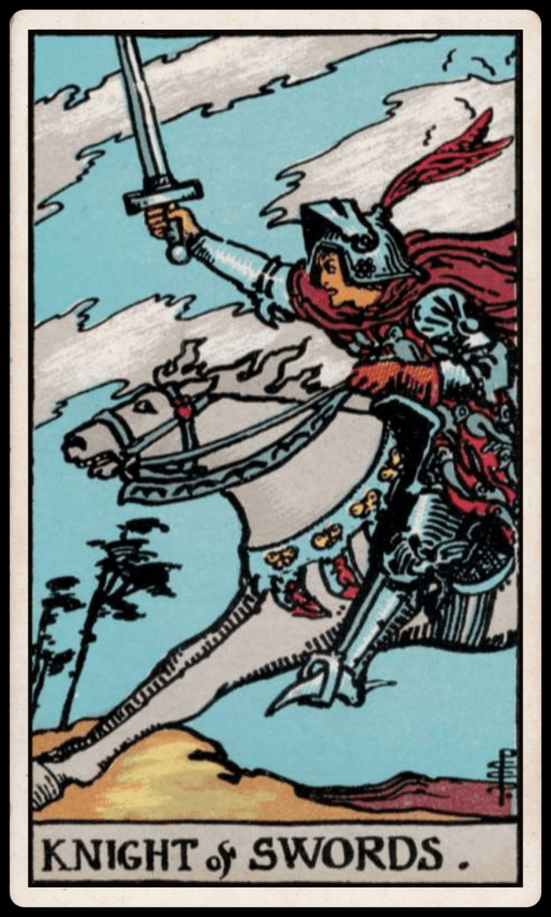 This card’s fiery energy encourages you to be bold, to take calculated risks, and to pursue your objectives with unwavering focus. Yet, it also whispers a word of caution: know when to rein in your enthusiasm, when to pause and reflect, and when to ground your energy. The Knight of Swords reminds you that true success lies in the ability to adapt, to move swiftly when necessary, and to settle into a state of focused intention when required. By embracing both the dynamism and the discipline of this card, you can navigate the complexities of your path with clarity and purpose.