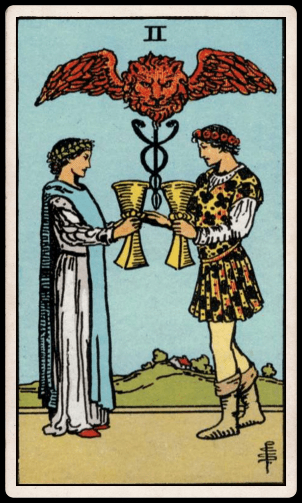 The Two of Cups appears in our reading today, signaling a potent emphasis on harmonious connection and balanced partnerships. This card speaks of a deepening of bonds, a recognition of mutual respect and understanding that permeates all facets of your life. Whether in romantic relationships, close friendships, or professional collaborations, the Two of Cups indicates a period of seamless alignment, where communication flows effortlessly and shared goals are pursued with unified purpose.