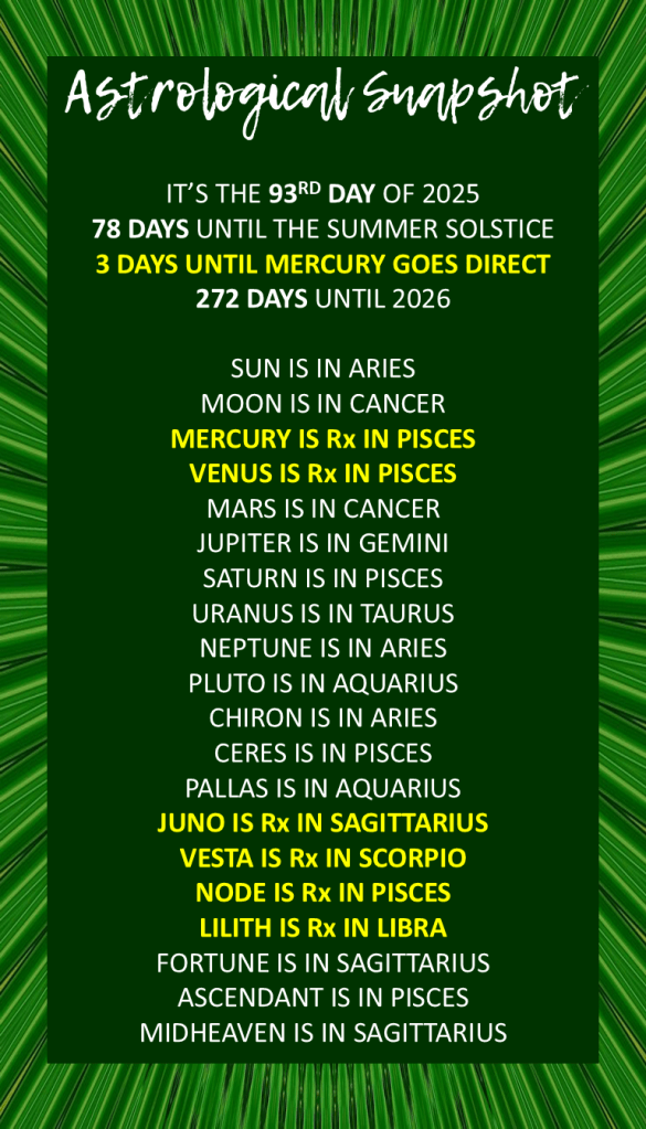 The Sun in Aries brings an assertive edge to your communication style, encouraging you to express your ideas with confidence. Mars in Cancer adds an emotional layer, urging you to connect with others on a deeper level. The Saturn sextile to Uranus in Taurus offers an opportunity to ground your innovative ideas in practical reality, providing a framework for building lasting structures. In essence, today’s energies invite you to navigate your social interactions with a blend of intellectual curiosity and emotional awareness, ensuring that your outward expression aligns with your inner truth.