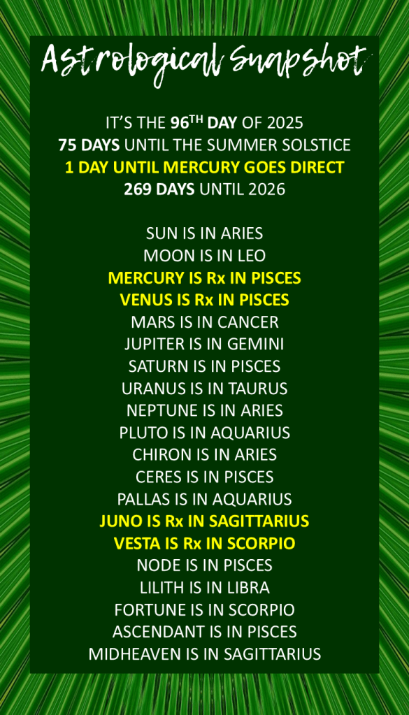 First and foremost, let’s talk about Mercury. After a period spent retrograde in the intuitive, sometimes murky, waters of Pisces, your ruler stations direct today! 🧠✨ This is like the mental gears shifting back into forward drive. If you’ve felt like communication was unclear, plans were stalled, or your thoughts were more internally focused and perhaps a bit confusing, expect that to begin lifting. Clarity, especially regarding intuition, creative ideas, or compassionate understanding (Pisces themes), starts to emerge. Since this is happening in Pisces, these insights might feel less like pure logic and more like intuitive downloads becoming actionable. Mercury’s helpful links today mean this returning clarity can fuel emotionally intelligent actions (trine Mars in Cancer 🦀) and spark innovative thinking (sextile Uranus in Taurus 💡). However, Mercury is still very close to reflective Venus retrograde and serious Saturn in Pisces, meaning your communications and thoughts are deeply intertwined with a need for realism, committed values, and perhaps addressing past relationship or self-worth themes before fully moving ahead. Ground your brilliant ideas in authentic values. 🗣️💖⚖️