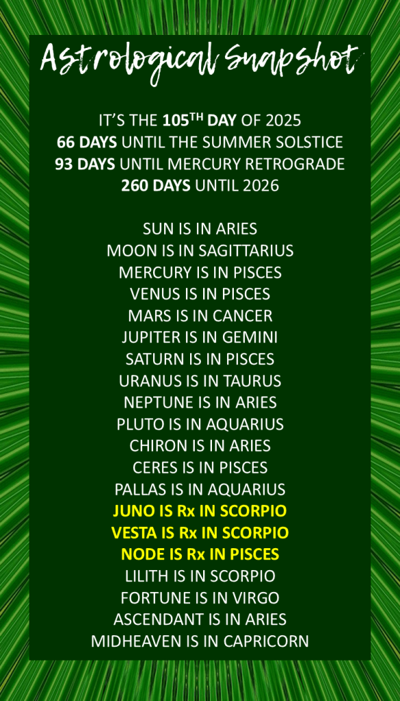 Much of the day’s underlying tone is shaped by your ruling planet, Mercury 🗣️, likely spending most of its time finishing its journey through watery Pisces. This placement encourages intuitive thinking, compassionate communication, and wrapping up old mental cycles. You might feel more reflective, imaginative, or drawn to processing information on a more feeling level than usual. Mercury’s proximity to serious Saturn and relationship-oriented Venus, both also in Pisces, could bring focus to long-term plans, responsible communication, or blending logic with emotional commitments. However, this Pisces emphasis forms a distinct square to expansive Jupiter currently transiting your sign. This creates a key tension for you: your desire to learn, connect, and explore broadly (Jupiter in Gemini) might feel constrained or challenged by the need for emotional depth, structure, or dealing with endings (Pisces stellium). Integrating these different modes of processing is a central theme. Anticipation might also build as Mercury nears its energetic shift into fiery Aries, felt perhaps as a readiness for a new mental spark.