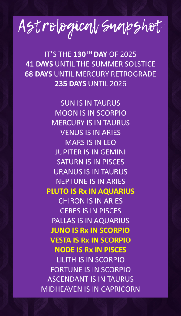 Your ruling planet, quick-witted Mercury, is currently taking a more deliberate pace through earthy Taurus, and from a solar perspective, this places it in your 12th house of the subconscious, hidden matters, and spiritual understanding. This isn’t Mercury’s usual fast lane; instead, your thoughts may turn more inward, focusing on introspection, research, or quietly processing information behind the scenes. Practical ideas can emerge from this quiet space. Mercury’s square to transformative Pluto in Aquarius (your solar 9th house of beliefs and higher learning) can trigger intense mental deep dives into your philosophies or future studies, perhaps even leading to some compelling debates or a powerful re-evaluation of what you hold to be true. 🧐 A subtle semi-sextile from Mercury to Neptune in Aries (your solar 11th house) hints that your introspective thoughts can be gently inspired by your dreams for your social life or humanitarian goals.