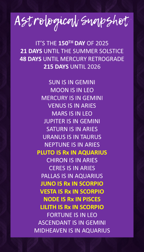 With the Sun and Mercury both powerfully positioned in Gemini, the very essence of your being is vibrating with curiosity, communication, and intellectual energy. The Sun, at 10°12′ Gemini, illuminates your sense of self and purpose, while Mercury, your ruling planet, at 11°43′ Gemini, ensures your thoughts are sharp and your words carry significant weight. For you, this means an extraordinary day for brainstorming, engaging in lively discussions, and connecting disparate pieces of information. Ideas will flow, and you’ll feel a strong urge to express yourself, share insights, and learn from every interaction. This is your time to be heard, to ask questions, and to effortlessly gather knowledge. 🗣️🧠