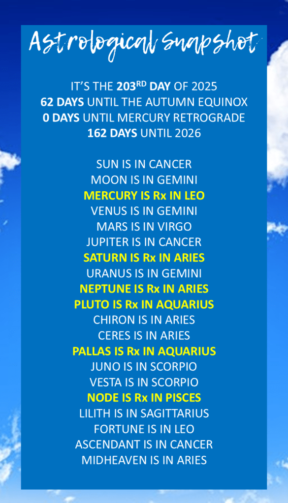 However, Mercury, your chart ruler, is currently retrograde in Leo. This means that while your outward expression (governed by your Gemini Rising) might feel bold and direct, there’s an internal process of re-evaluation at play regarding your words. You might find yourself rethinking how you’ve been presenting your ideas or refining your personal narrative. It’s a period that calls for patience and clarity in your communications, as misunderstandings can easily arise if you rush. This retrograde offers a valuable opportunity to perfect your message and ensure your ideas are fully crystallized before you share them.