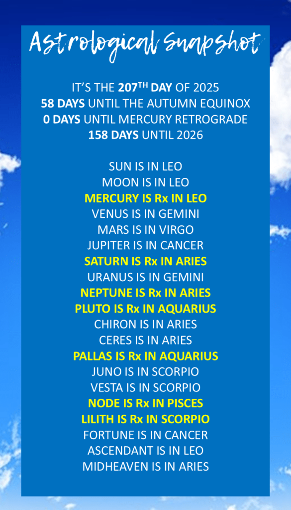 Adding to the complexity, your ruling planet Mercury is retrograde in Leo, also in your 3rd House. This emphasizes internal reflection and a revisiting of how you express yourself and communicate. Expect to review past conversations, rethink ideas, or even find yourself in situations where communication needs a second look. This retrograde period is an invitation to refine your communication style and ensure your message is truly aligned with your heart. Don’t be surprised if you’re revisiting old projects or conversations to gain new clarity. 💬🔙