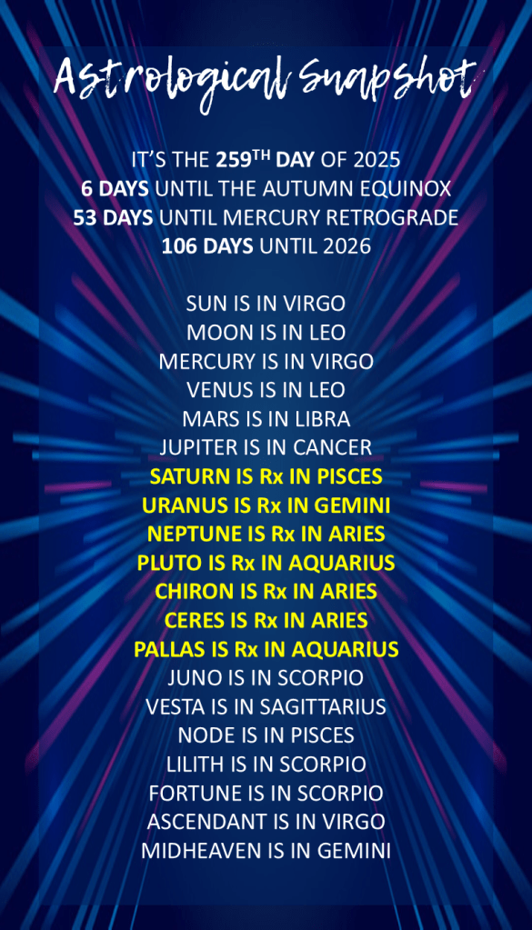 September 20 — Sun in Virgo Opposite Saturn in Pisces