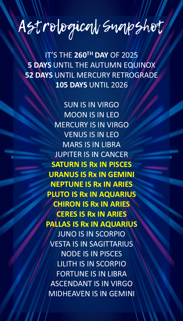 September 20 — Sun in Virgo Opposite Saturn in Pisces