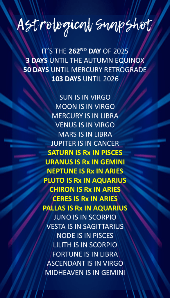 September 20 — Sun in Virgo Opposite Saturn in Pisces
