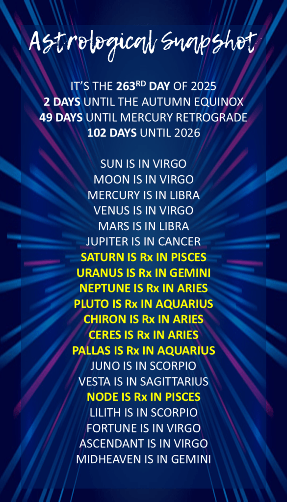 September 21st is a day of deep internal work and fundamental shifts. The main event is a powerful New Moon Solar Eclipse in Virgo 🌑✨. This eclipse is activating the part of your chart that governs your home, family, and emotional foundations. For you, this isn’t just a regular new beginning; it’s a fated reset, urging you to bring order and clarity to your most private world. You’re being called to organize your living space, have important conversations with family members, or address deep-seated emotional patterns that have been holding you back. This is a time to build a more secure and stable base for your life.
