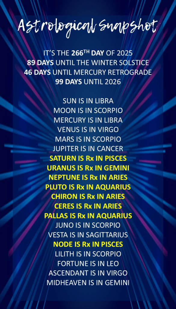 - A New Moon Solar Eclipse occurred on the 21st in the sign of Virgo.
