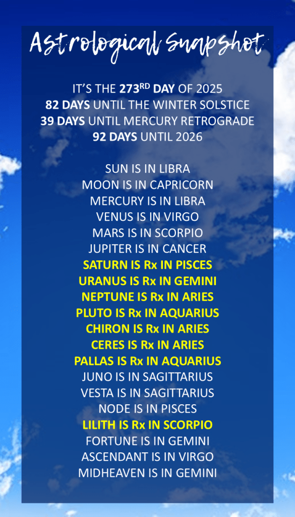 Simultaneously, the Moon in disciplined Capricorn (24∘) anchors itself in your house of shared assets and intense commitments (the 8th House). This is where your emotional need for lightness and variety is confronted by the gravity of obligation. Today, you are being compelled to put structure around vulnerability. You must attend to debt, complex financial agreements, or emotional power dynamics within close relationships. While your instinct is to talk your way around heavy topics, this transit demands mature, responsible action. This is the moment to audit the emotional and material baggage you share with others, seeking clarity that will lead to a more secure future foundation.