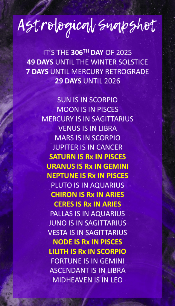 November 24 — Mercury in Scorpio Conjunct Venus in Scorpio