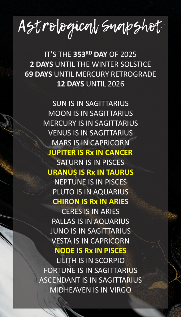 Collectively, this day is marked by a profound invitation to witness the beauty of gestation. As the world approaches the New Moon in Sagittarius, there is a natural urge to rush toward the new, but The Empress stands at the gate, reminding everyone that nothing of value grows without a period of quiet, sustained attention. This is a moment for every sign to prioritize vitality and harmony, recognizing that the most successful ventures are those that are rooted in pleasure and well-being. By focusing on what is already flourishing in your life, you create a magnetic field that naturally attracts further abundance. It is a day where the “how” is just as important as the “what,” and the grace you extend to yourself and others becomes the very soil in which your future intentions take root.