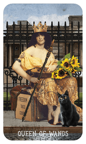 The collective energy today centers on the integration of independence and structural integrity. As the Venus-Saturn conjunction at 2°44′ Aries demands a sobering look at our commitments, the Queen of Wands ensures that this discipline does not extinguish your inner fire. For all signs, there is a push to move beyond the fear of being seen or misunderstood. This card represents a state of high-frequency courage—the ability to walk your own path even when the terrain feels unpredictable. It is a moment where the “impossible” breakthroughs of the day are fueled by a spirited refusal to conform to a duller version of yourself.