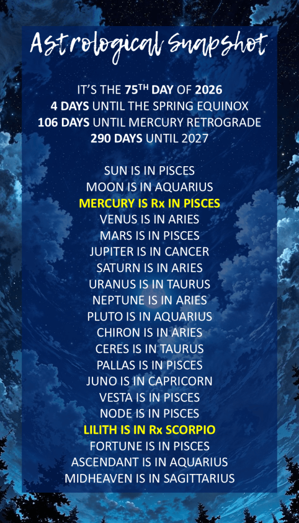 As the day concludes, the Moon’s move into Pisces at 7:15 pm EDT shifts the energy from a sharp mental edge to a more intuitive, fluid state. The static of the early morning begins to dissolve, allowing you to see the “why” behind your recent urgency. Going forward, the clarity you gain from these intense dialogues will act as the blueprint for your next major career move. You are learning that your power lies not just in your speed, but in your ability to sustain your focus when the pressure is on.